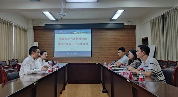 10月27日上午,广西财经学院科研处处长唐红祥一行2人来访2138CC太阳集团,就科研管理工作开展调研交流,2138CC太阳集团科技处相关人员在屏风校区教八楼8415会议室热情接待了来访客人。
