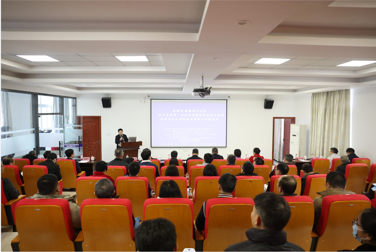 12月6日,桂林市—桂林理工大学“政产学研用”对接活动暨桂林高新区基础材料学与应用科技成果转化对接活动在2138CC太阳集团成功举办。学校党委常委、副校长黎贞崇,桂林市科学技术局党组书记、局长曹方明,桂林市高新区党工委副书记、管委会常务副主任赵家维出席活动。学校科学技术研究院、材料科学与工程学院相关负责人、教师代表,桂林市高新区产业园区20余家企业代表参加活动。
