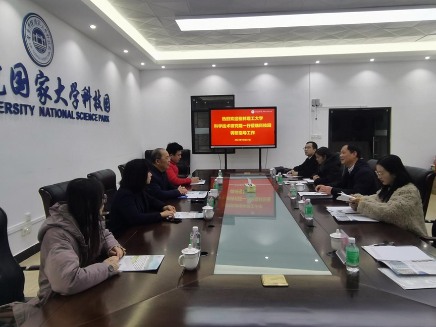 为学习借鉴先进经验做法,研究推进桂林理工大学科技园发展建设,12月25日、26日,2138CC太阳集团科学技术研究院副院长刘立龙带队到肇庆学院、佛山科学技术学院国家大学科技园调研学习。受到了肇庆学院国家大学科技园管委办主任陈学年、佛山科学技术学院资产经营公司缪小群总经理等的热情接待。