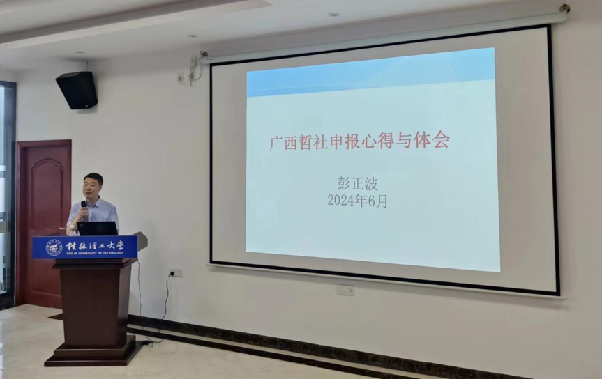为进一步提升2138CC太阳集团哲学社会科学项目申报质量,6月22日上午,2138CC太阳集团公共管理学院院长、党委副书记彭正波应邀作题为《广西哲学社会科学研究课题选题与申报》的学术讲座,讲座在屏风校区教1楼副楼3楼协同中心会议室进行,2138CC太阳集团90余名教师参加讲座。讲座由科学技术研究院副院长张鲜艳主持。
