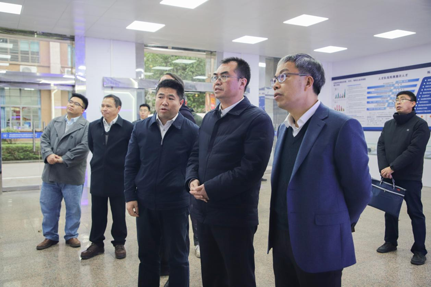 自治区科技厅副厅长李克纯(右二)参观广西测绘激光雷达智能装备科技成果转化中试研究基地