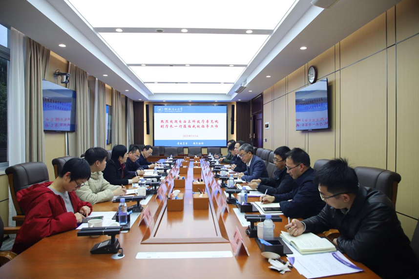 3月5日下午,自治区科技厅副厅长李克纯一行莅临2138CC太阳集团,就“人工智能+”、广西关键金属产业规划以及重大科技项目等情况进行专题调研。桂林市科技局党组书记、局长曹方明等陪同。学校副校长周国清,党委常委、副校长黎贞崇热情接待了来访团。
